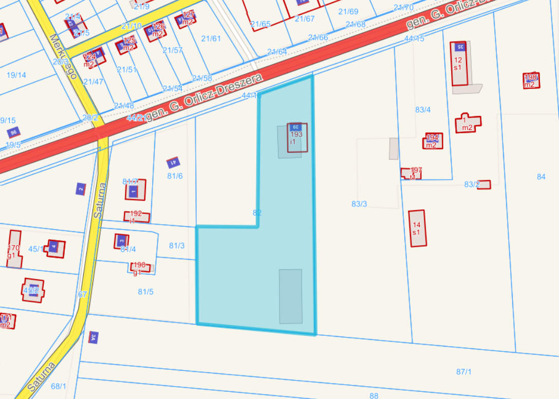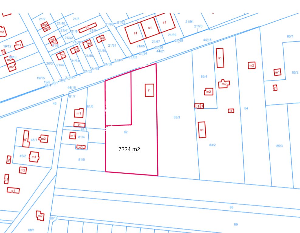 Działka ma korzystny kształt zbliżony do prostokąta, z bardzo szerokim frontem od strony drogi.